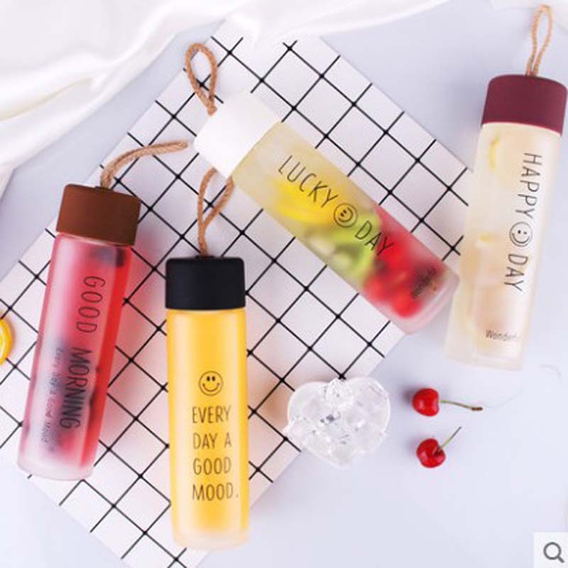 Portable English inspiring glass cup smiling face expression cup frosted ad glass-cup lovers cup customizable LOGO