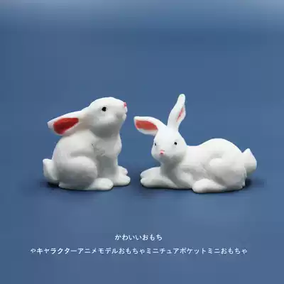 Cute little white rabbit simulation animal model ornaments miniature model mini rabbit Micro landscape ornaments a set of eight models
