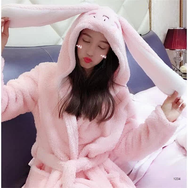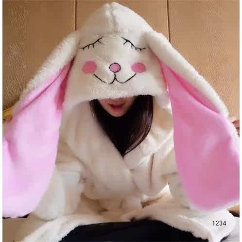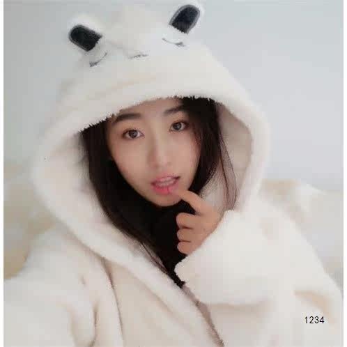 Fall Winter thickening coral flannel girls' nightclothes with caps and cute cartoon dressing robes