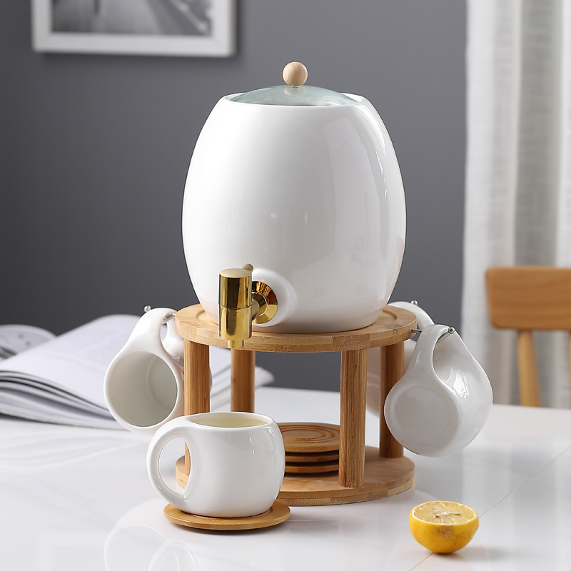 Water container ceramic cold kettle resistant high temperature and large capacity cold kettle suit household living room with faucet juice kettle