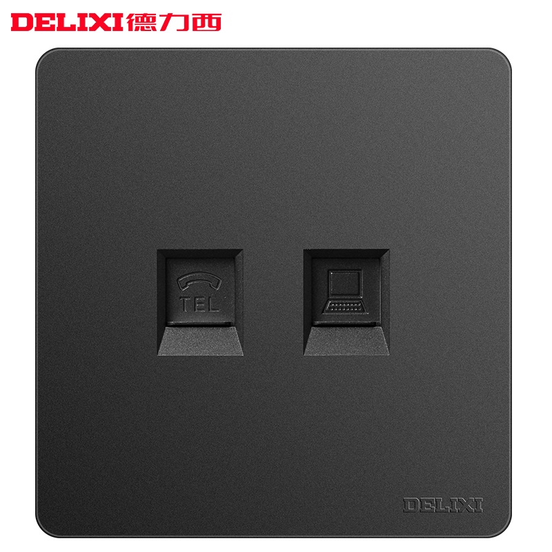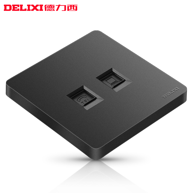 Delixi black network cable network computer telephone line panel household weak electric socket two-in-one 86 wall socket