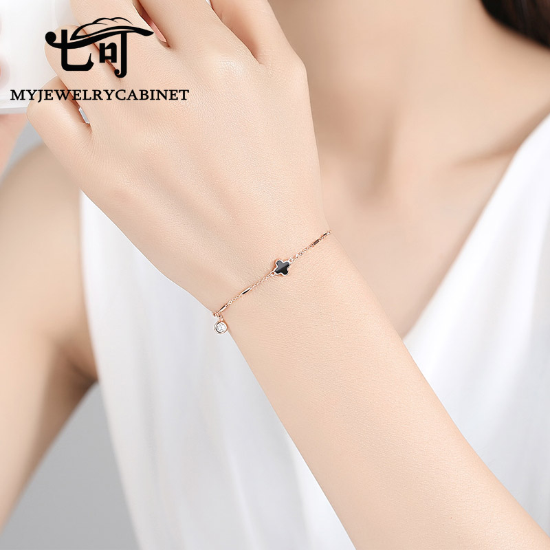 Four Leaves Grass Pure Silver Handmade Woman Han Edition Brief Personality Lukewarm Wind Girlfriends Birthday Valentine's Day Gift To Girlfriend
