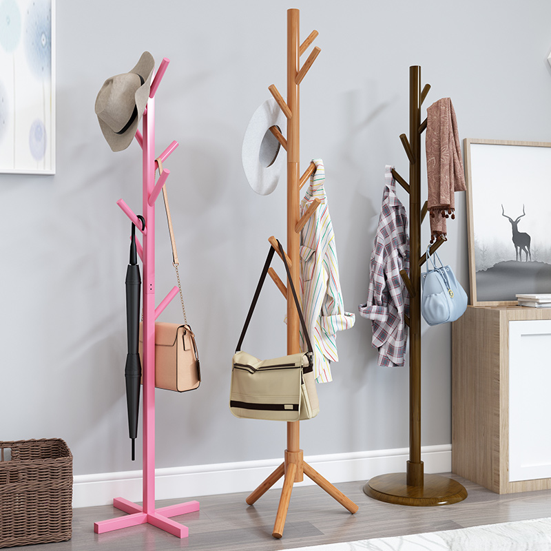 Coat rack Floor-to-ceiling simple bedroom household hanging clothes rack Foyer hanging bag storage Solid wood shelf saves space