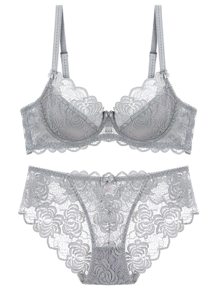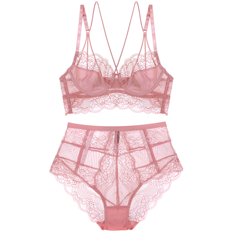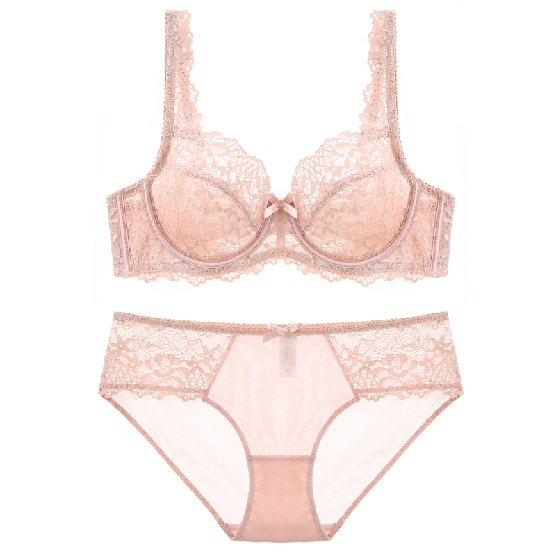 Fan-style Sexy ultra-thin lingerie suit No sponge lace Pivot Big Chest small underwear
