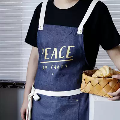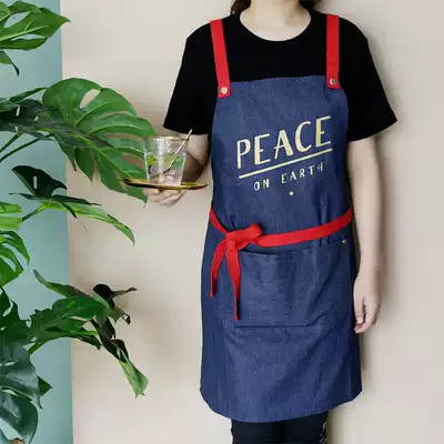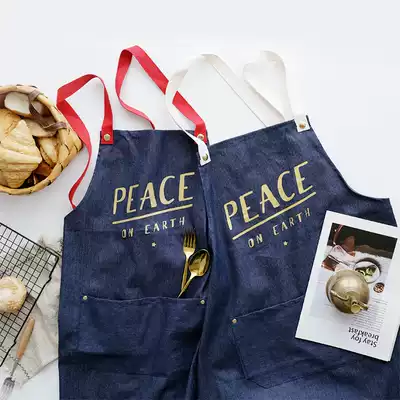 ins Nordic denim apron home simple Korean fashion kitchen personality girl men adult work clothes