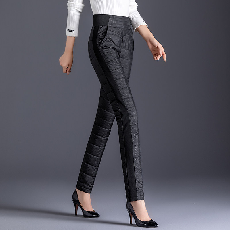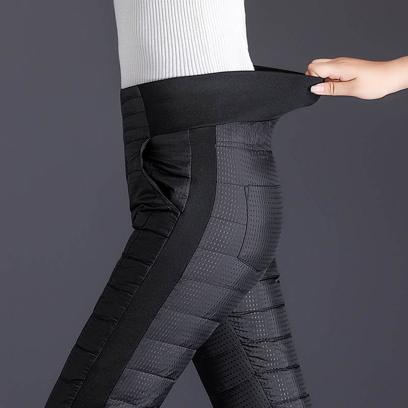 Down pants women wear fashion high waist thick plus velvet thin women winter leisure down cotton pants Europe station