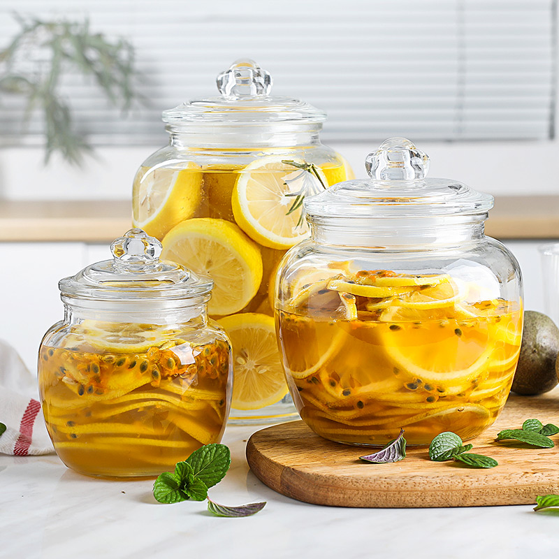 Glass sealed jar lemon honey passion fruit filial piety bottle pickle jar transparent food storage household size