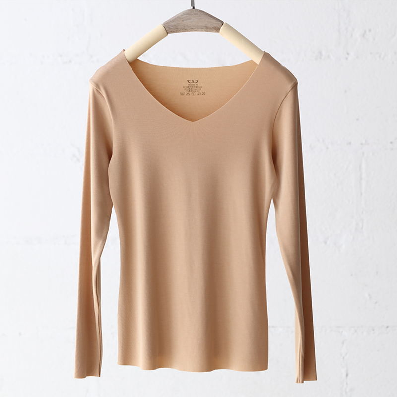 STW incognito heating clothes Women's modal autumn clothes Low-collar slim long-sleeved warm clothes wear a base top winter Y