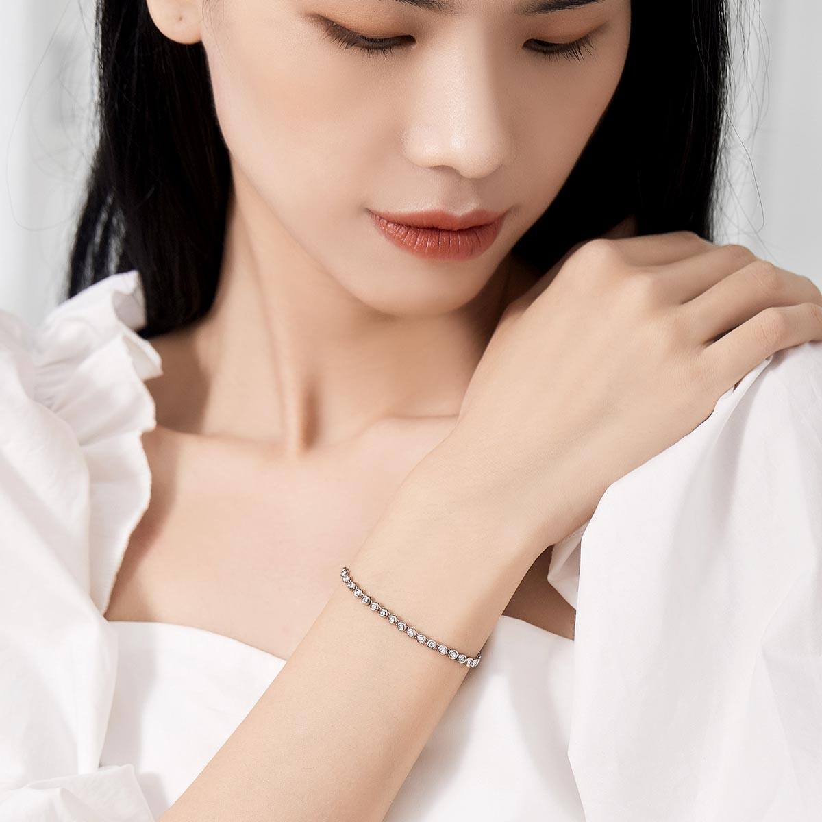 Happy Diamond Bubble Full Drilling Diamond Handmade Female White 18K Gold Real Drill Row Drilling Bracelet Fashion Brick-and-mortar Handmade