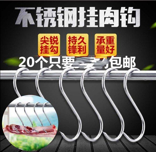 Stainless steel roast duck hook roast duck hook double hook roast meat ring S hook bacon hanging duck hook roast chicken ring hook 10 pack