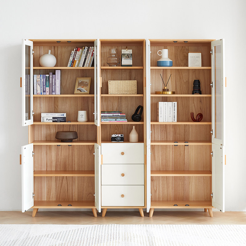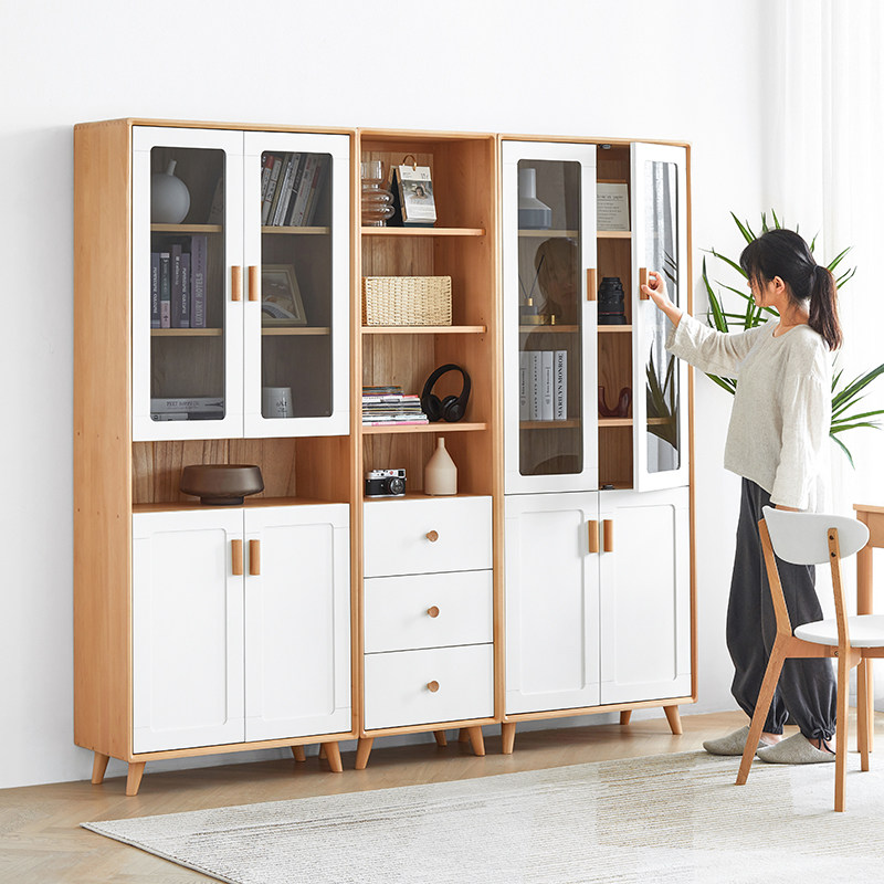 Original original solid wood bookcase small apartment bookshelf Nordic beech wood study furniture combination bookcase D4174