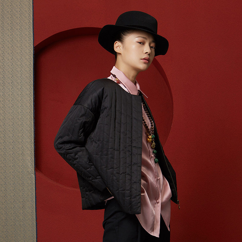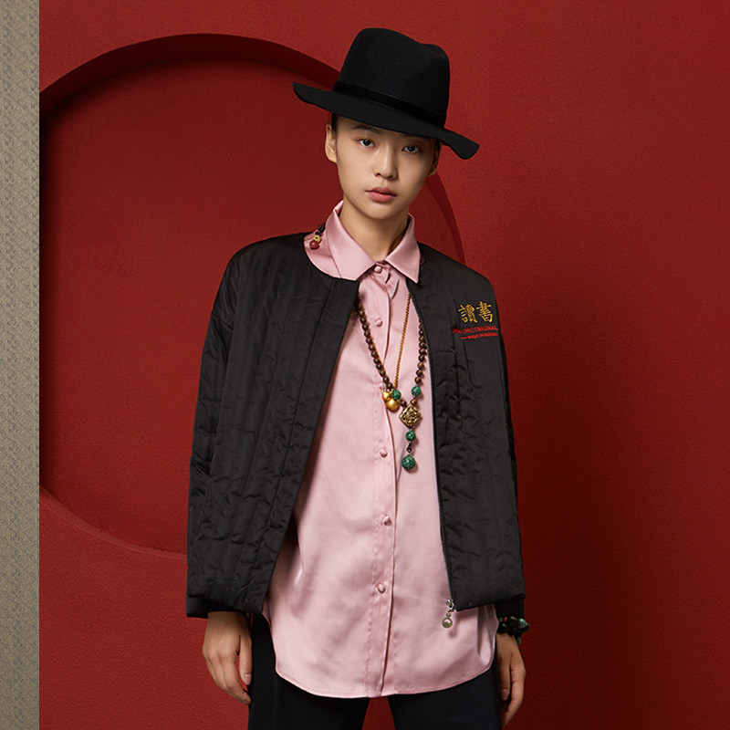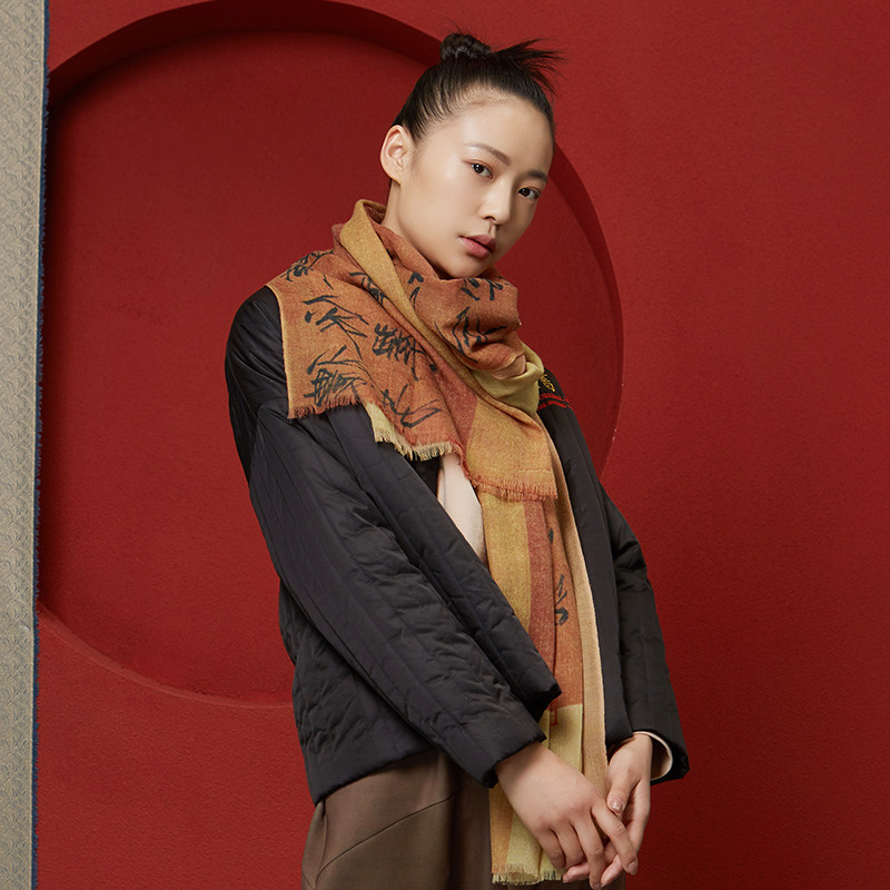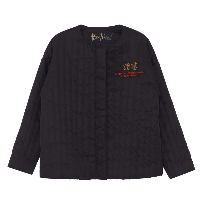 (Mustard original)Scholar Chinese style national tide jacket round neck text embroidery design short cotton dress for women