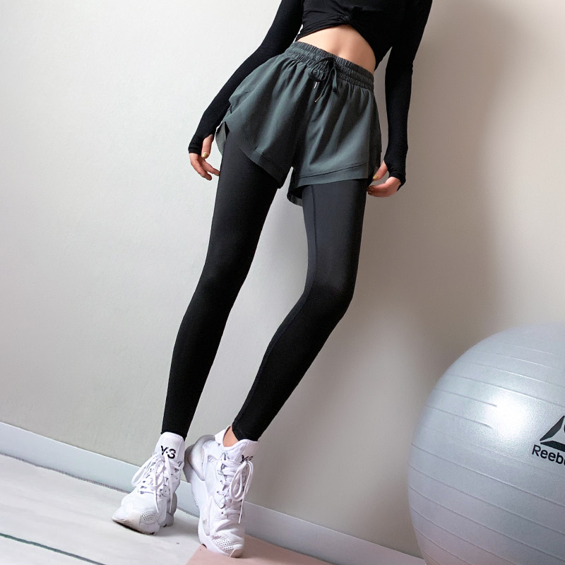 Fake Two Fitness Pants Woman High Waist Elastic Tight Running Pants Skirt Speed Dry Sports Pants Spring Summer Yoga Long Pants Slim Fit