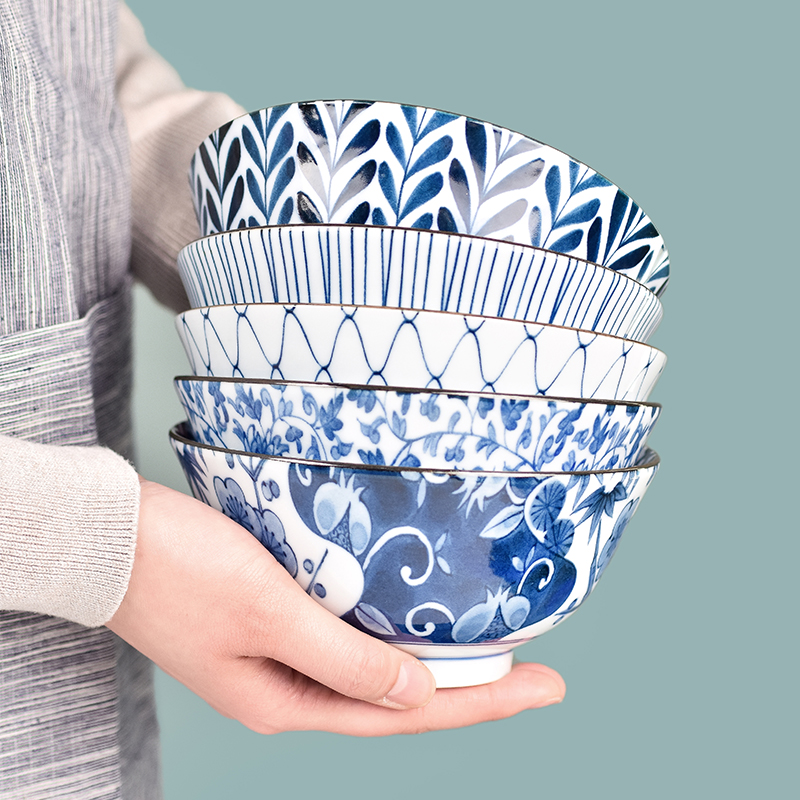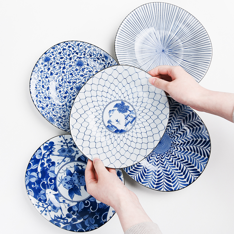 Plate bowl set household Posami burnt blue painted rice bowl plate housewarming gift tableware set bowl plate home