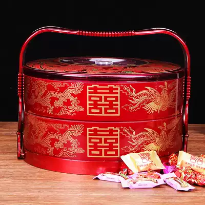 Food box Wedding Chinese antique dowry dumpling box Bamboo basket Wedding bridal supplies double-layer portable box fruit plate