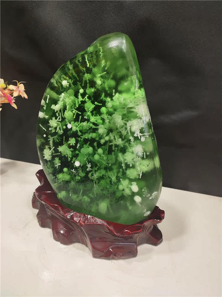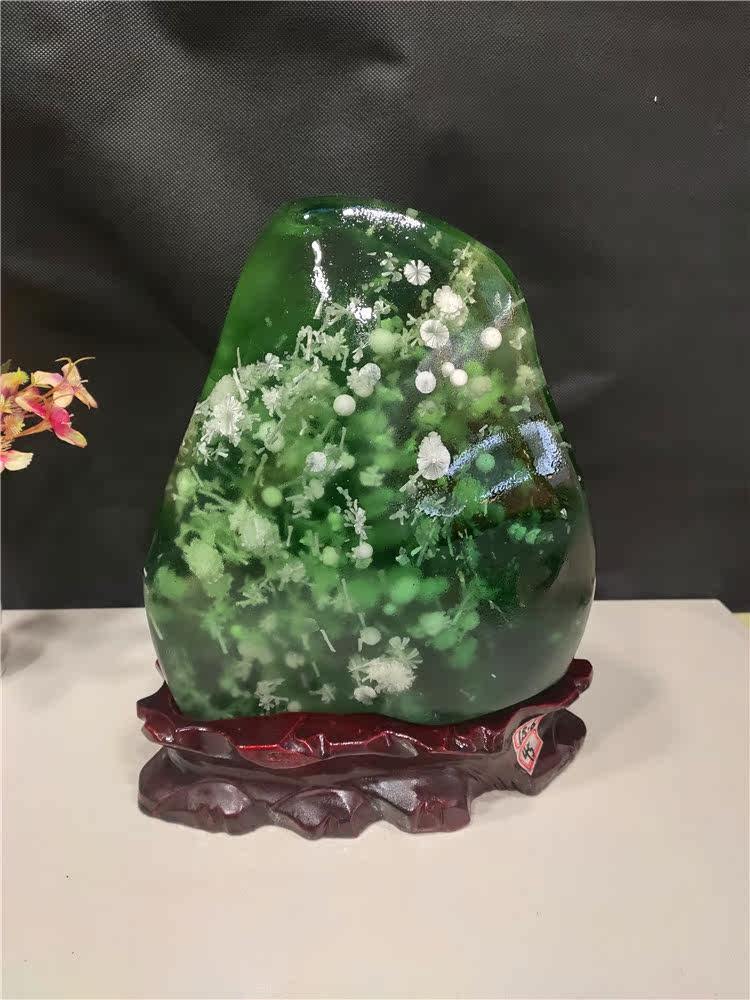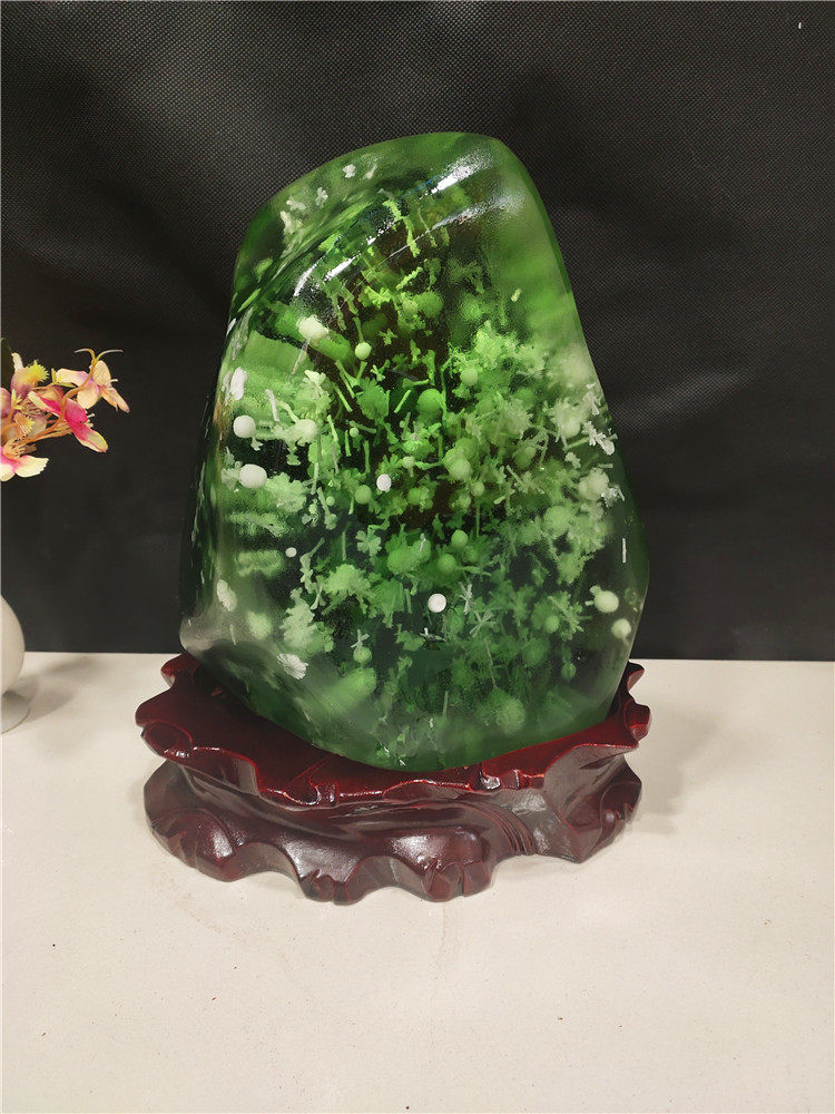 Brazilian green crystal jade red jasper ornaments strange stone original stone stone ornaments ornamental collection
