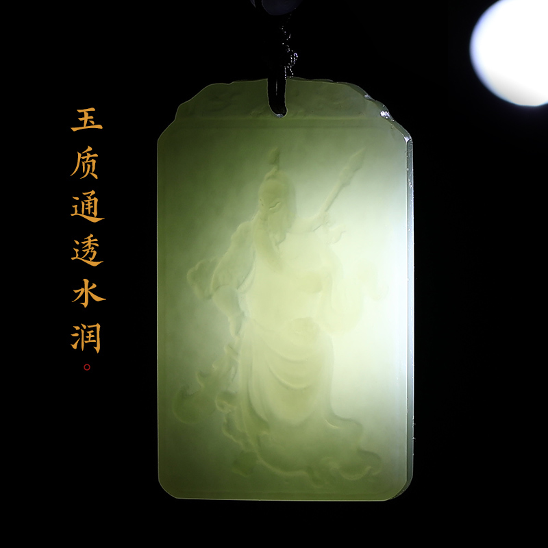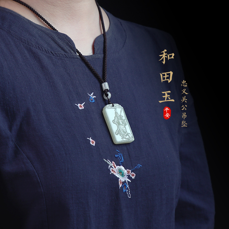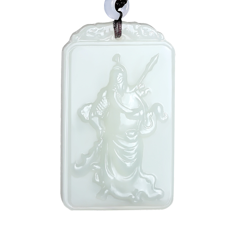 Crystal Lake natural Hetian jade Guan Gong pendant Male Martial God of wealth lucky evil pendant Portable Guan Yu domineering necklace