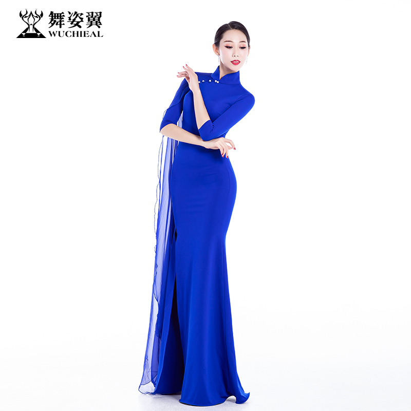 Dance posture wing shape body dress ceremonial dress women spring summer 2022 new classical dance training clothes catwalk long-sleeved cheongsam suit