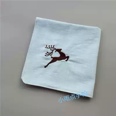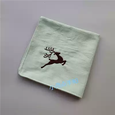 Elk embroidery small square towel pure cotton linen double-layer sweat towel men's handkerchief women's handkerchief absorbent tea towel can be embroidered