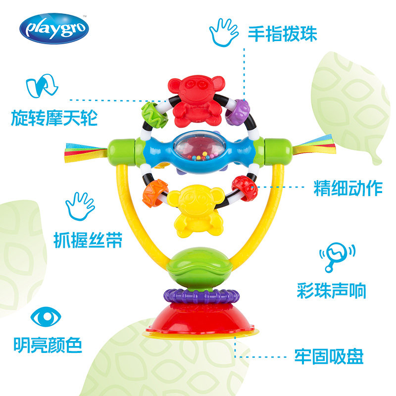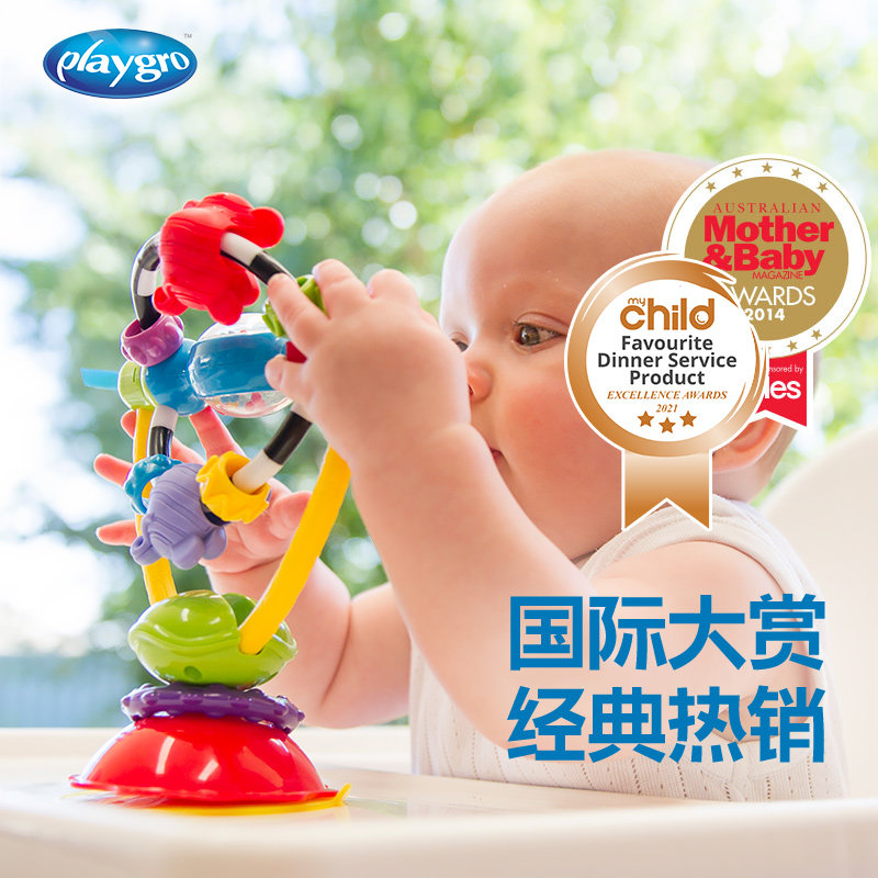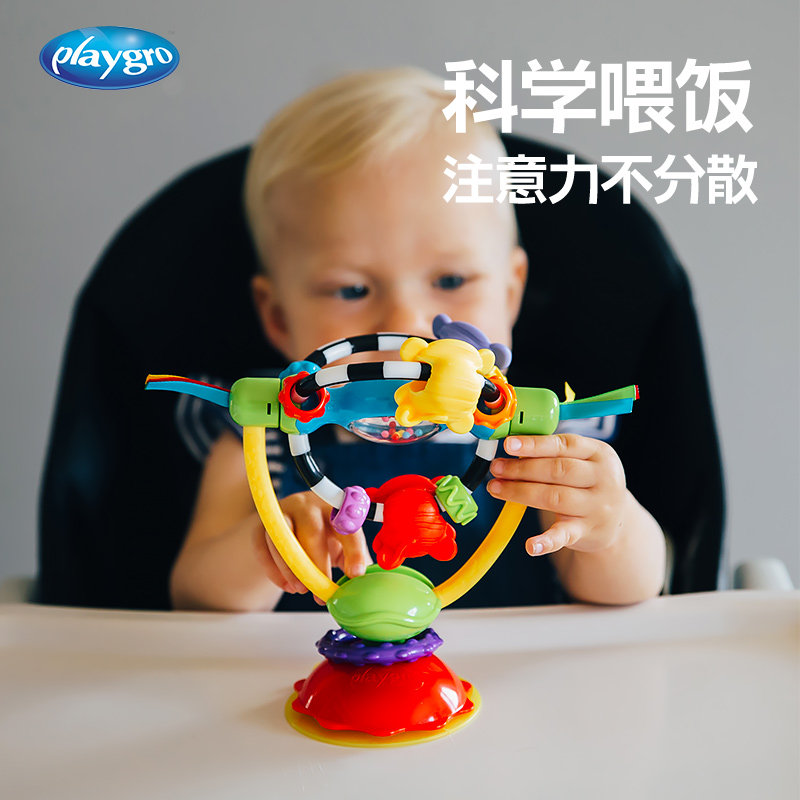 Playgro6 month baby dining chair suction cup toy spin rocking bell can nibble the puzzle baby feeding deity