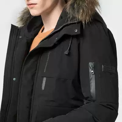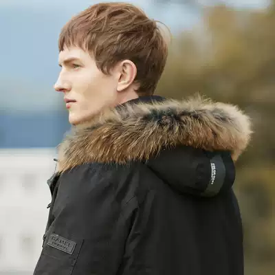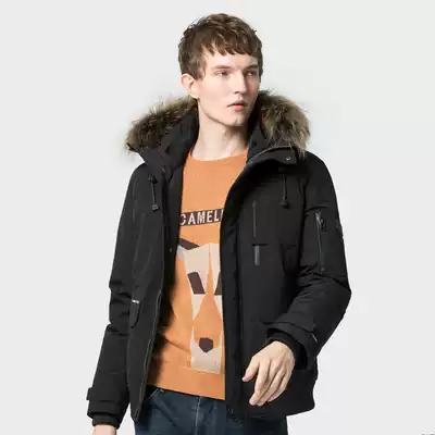 Camel men's wear removable real fur collar down jacket men's short tooling arm bag hooded slim casual winter coat