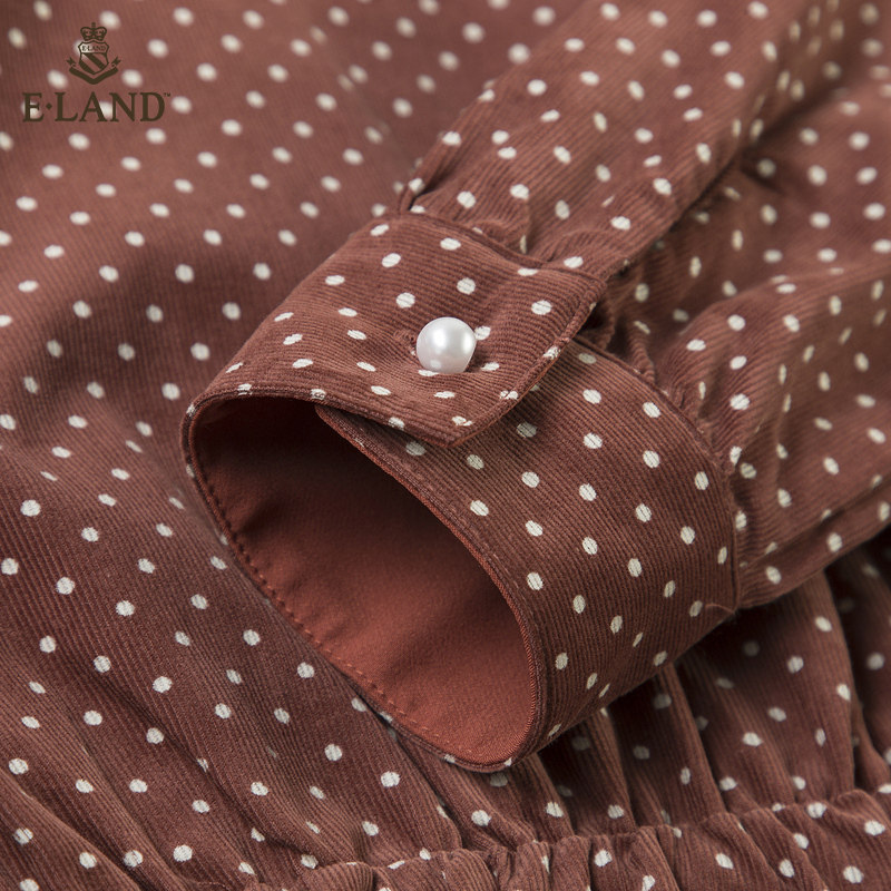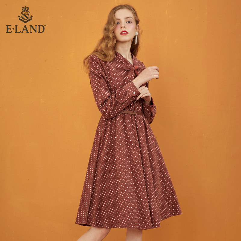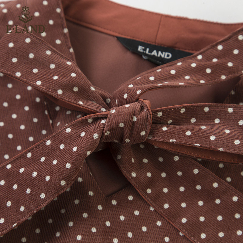 ELAND love spring and summer V-neck neckline lace-up long-sleeved dress temperament polka dot elastic waist women