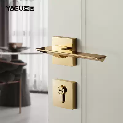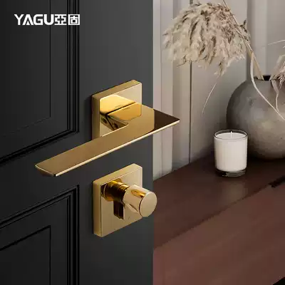 Yagu door lock Indoor bedroom Rose gold solid wood magnetic room door lock single-sided copper silent two-piece pure light luxury