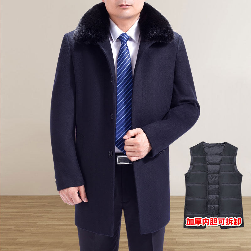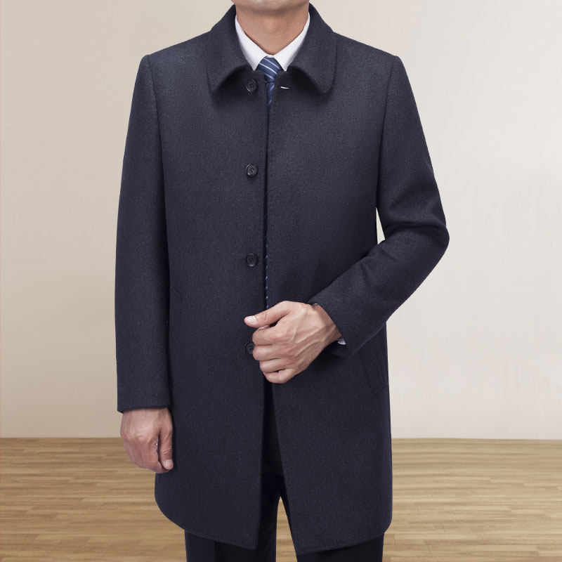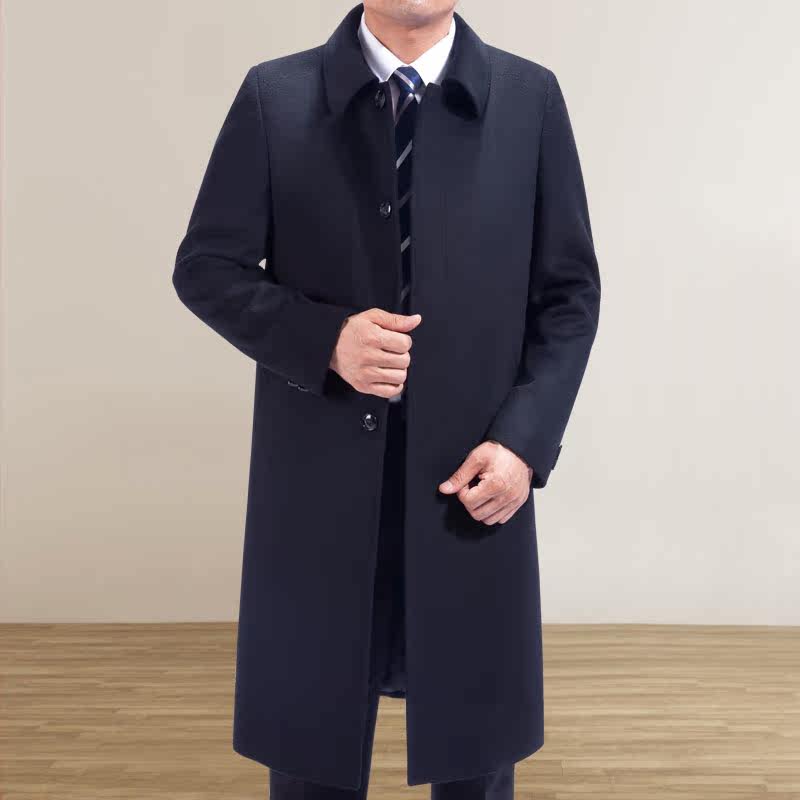 Autumn and winter middle-aged men's wool Wool Over the long version of the Old Age Thickened Cashmere Windsuit Men's and Dad Dress Jacket