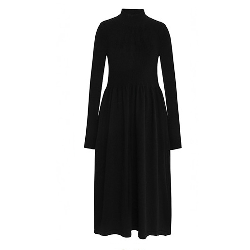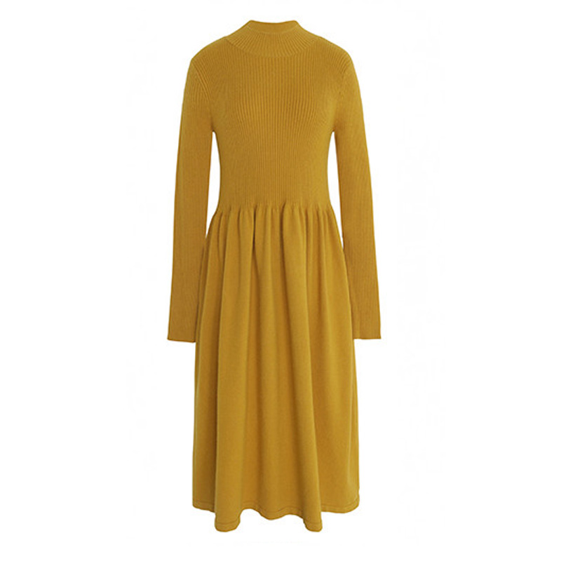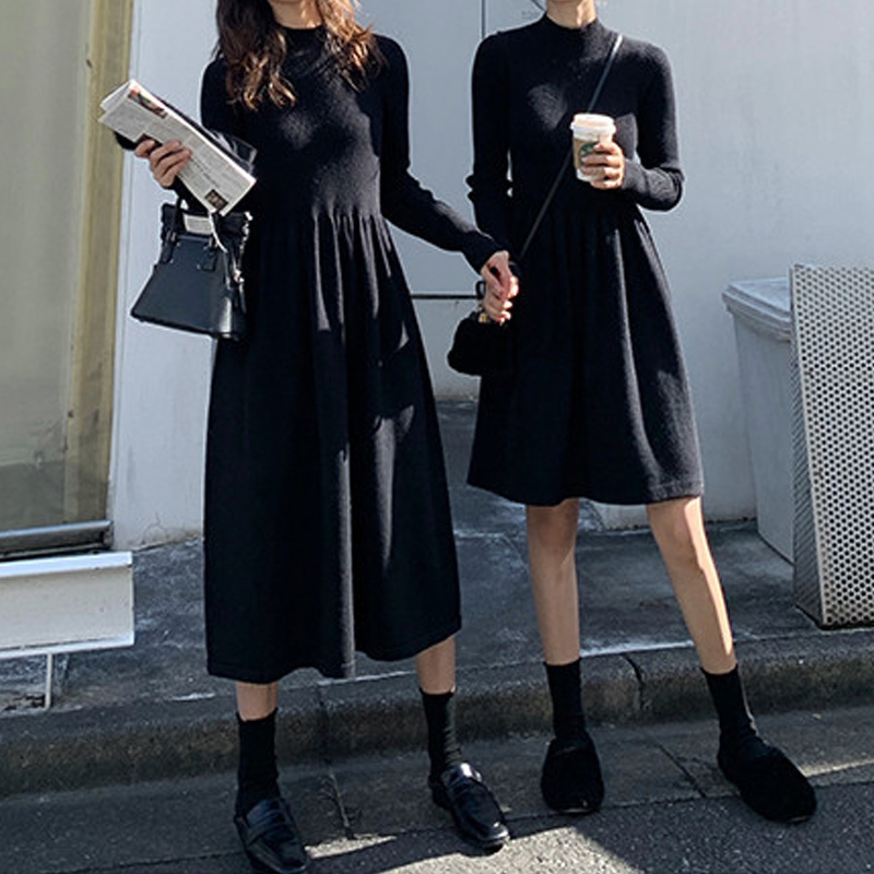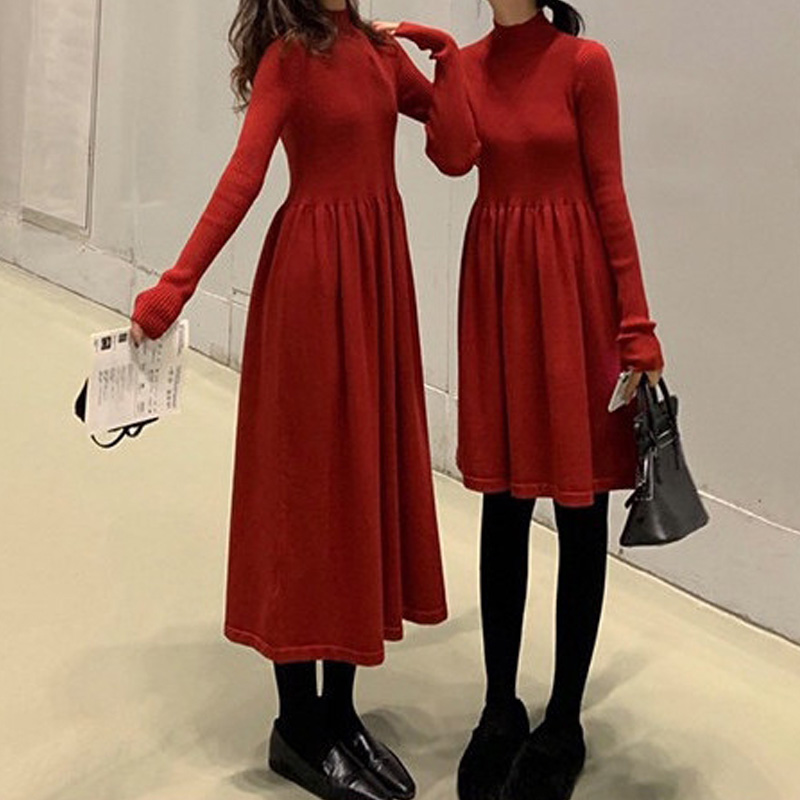 Early autumn online red long version French style retro past knee knit foreign style Korean version temperament collection waist display slim sweater long dress