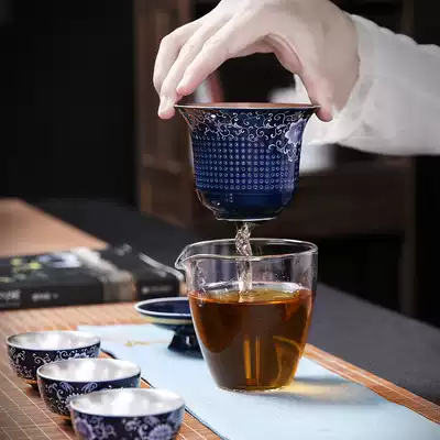 National color, Tianxiang, Ji blue, one pot, three cups, ten thousand flowers, splendid enamel, one pot, three cups