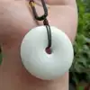 Natural Xi'an Lantian Jade Pingan buckle pendant pendant pendant for men and women Ivory white health care live jade round brand necklace state inspection