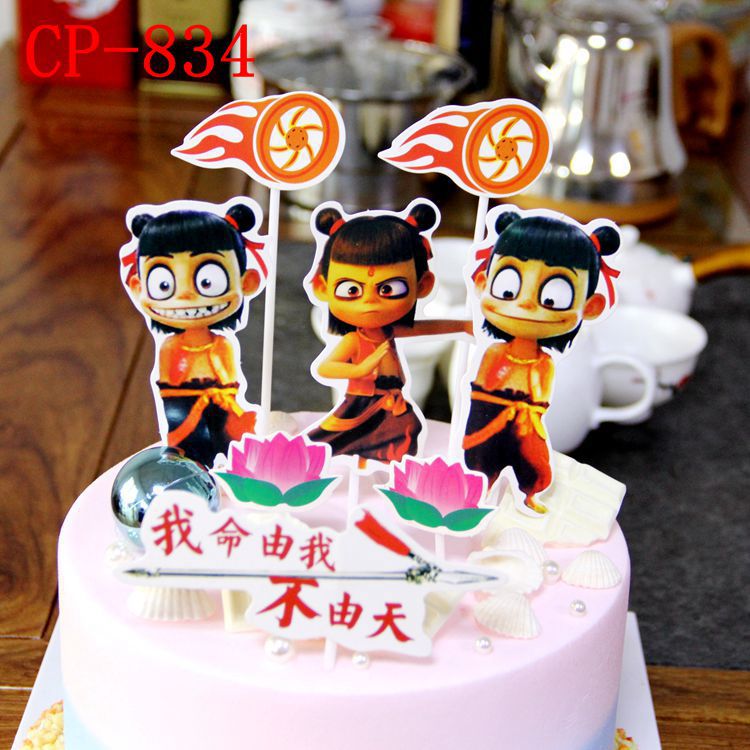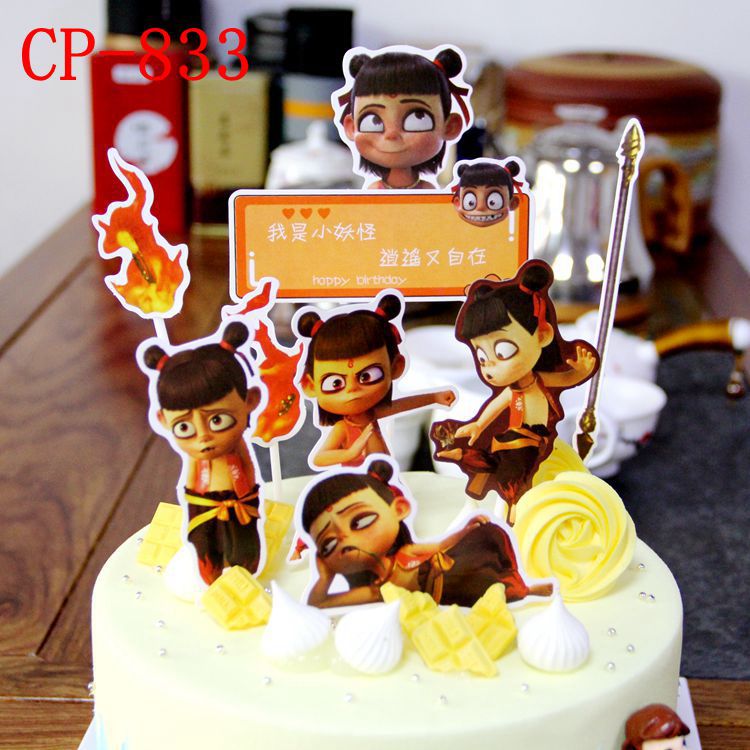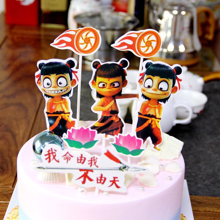 Which Nacha Cake Inserts the Decorative Insert Card Which of the Nacha Devil Child Downfall Birthday Cake Creative Dessert Table Suit
