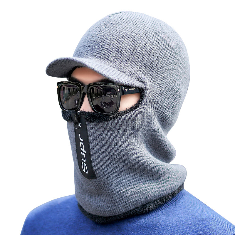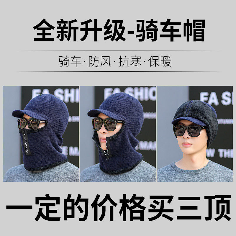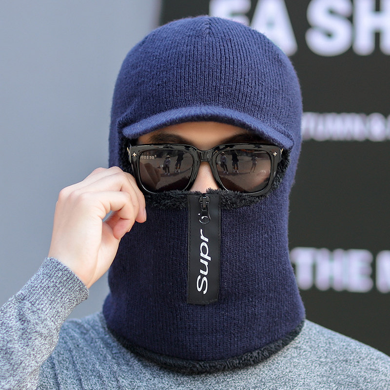Hat men's winter ear protection plus velvet knitted woolen hat Korean version thickened warm scarf one hat outdoor cycling hat