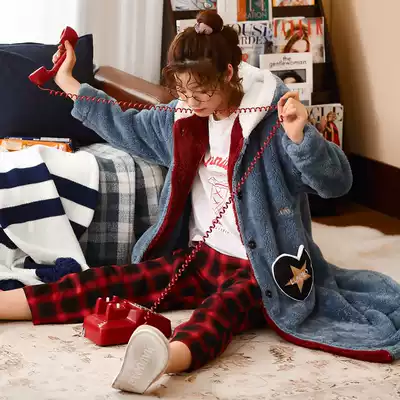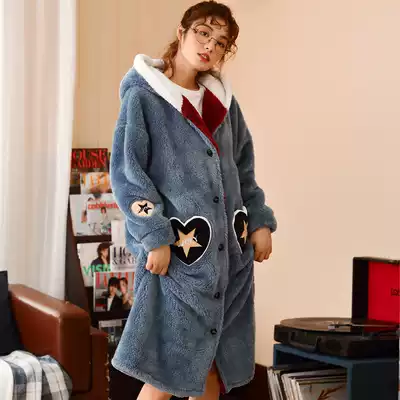 Antarctic people autumn and winter coral velvet robes women's long version of nightskirts thick flannel pajamas spring and autumn bathrobe home clothes