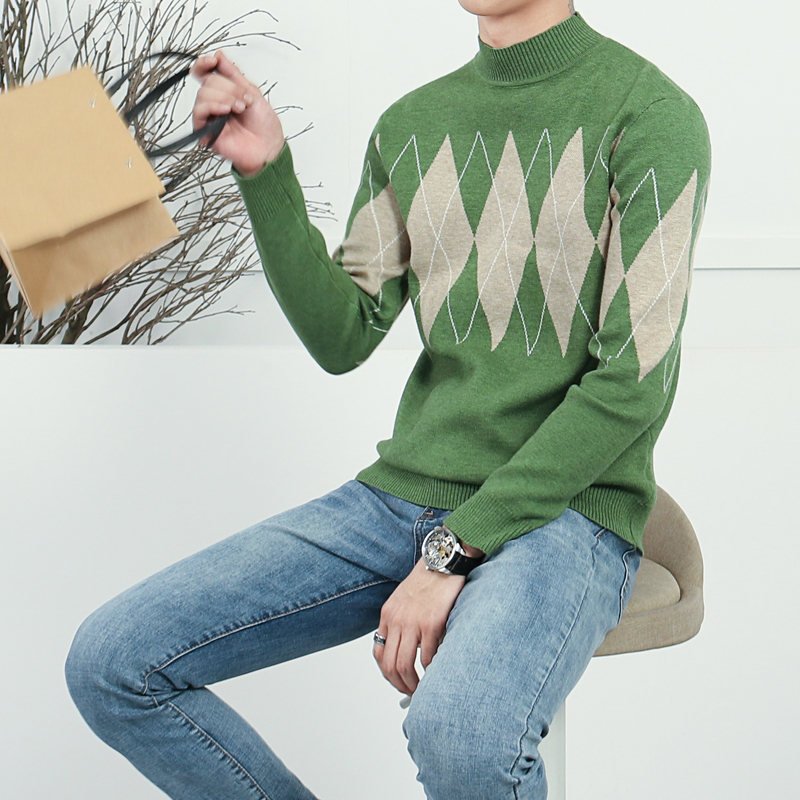 2019 new half turtleneck sweater men's Korean version of the trend personality men's bottoming shirt autumn and winter knitted sweater men's sweater