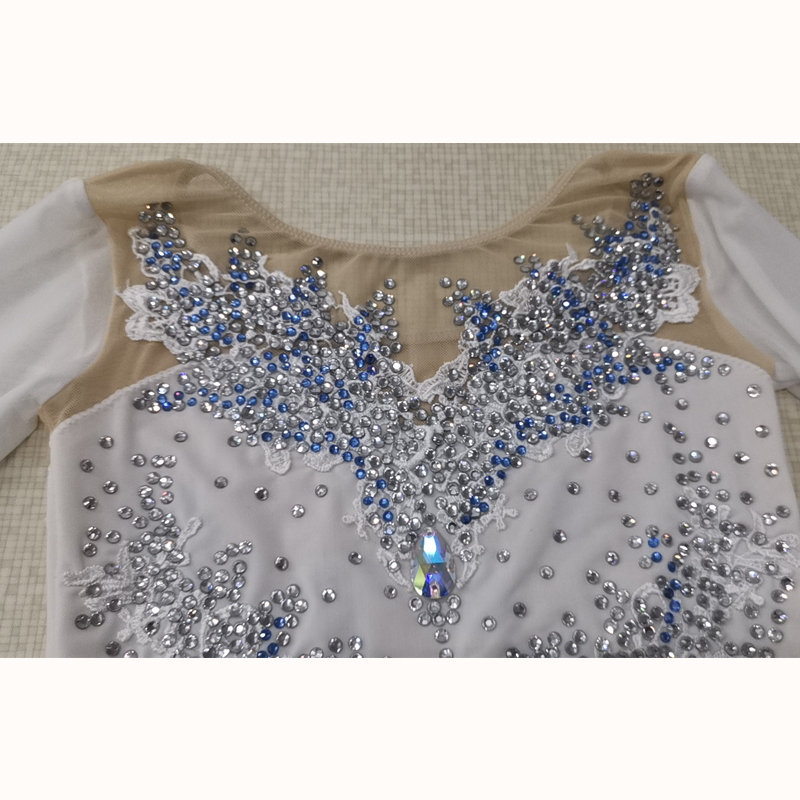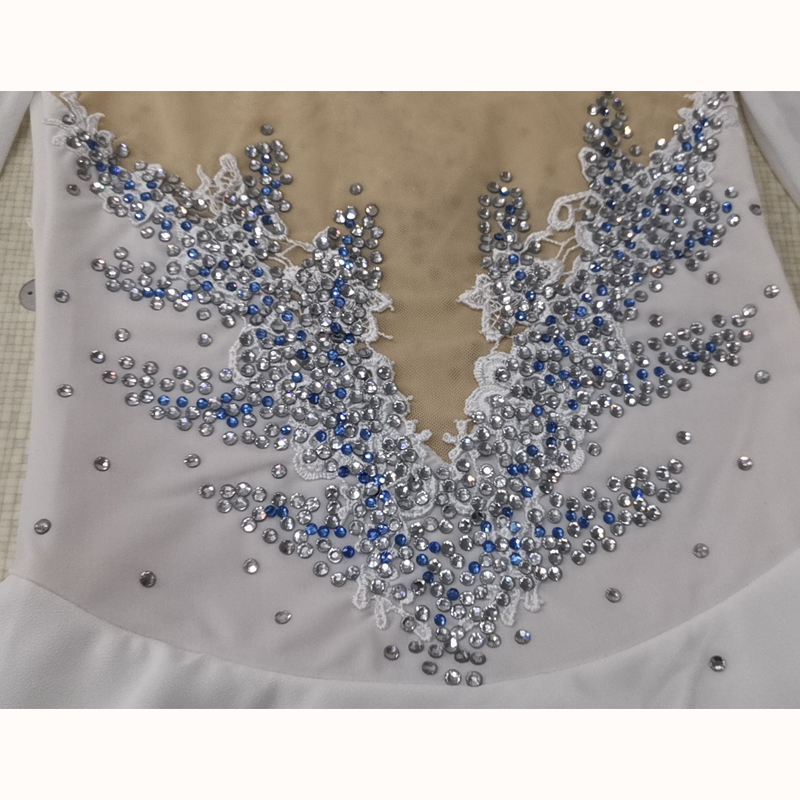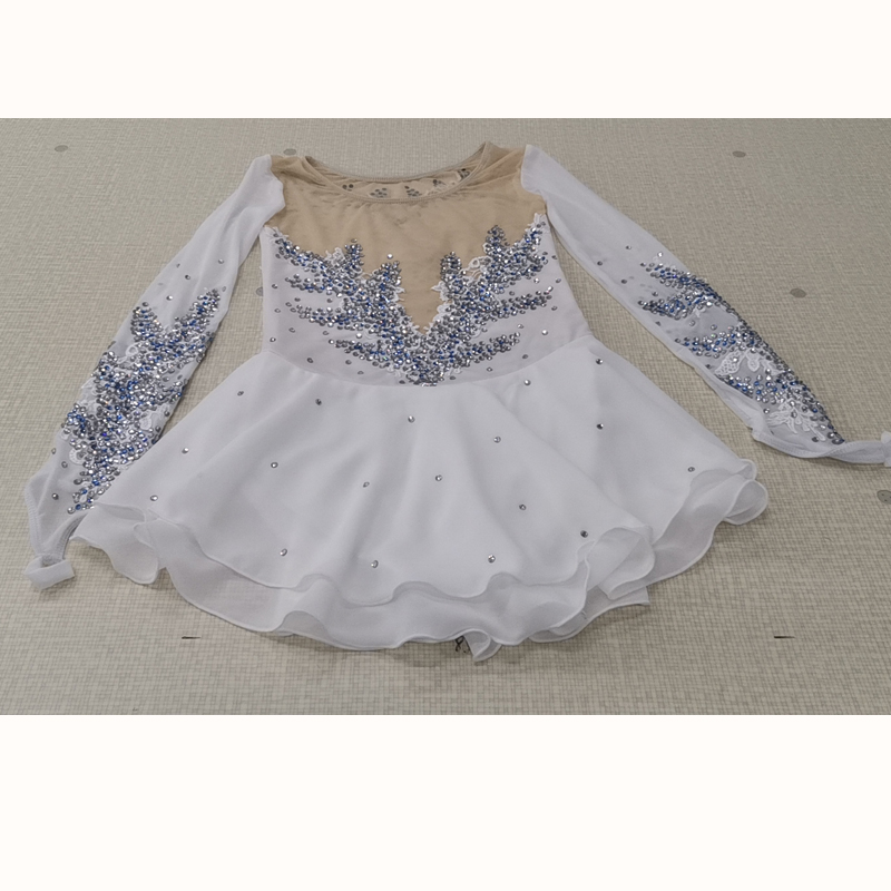 Fono Figure Skating Clothes Customized Children Adult Girls Competition Dress White Flowers