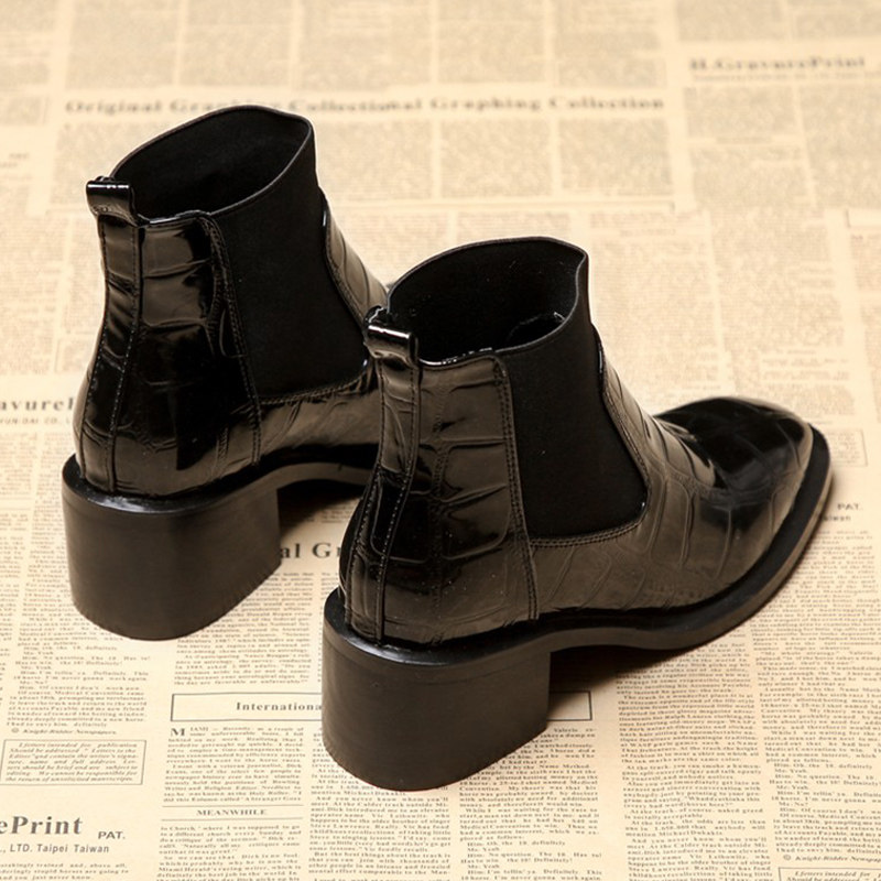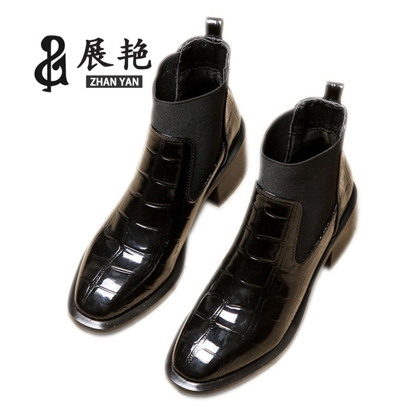 British style coarse with Martin boots female 2021 autumn shoes new small leather shoes patent leather wild black chic short boots women tide