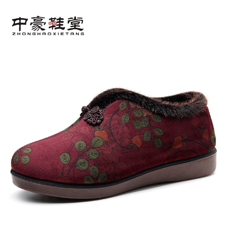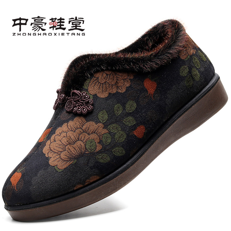 Warm women's cotton shoes for the elderly winter old Beijing cloth shoes plus velvet old lady non-slip grandma foot care elderly mother shoes