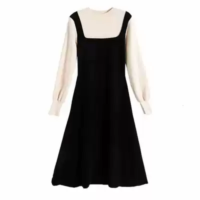 Autumn dress 2021 New Hepburn small black skirt waist thin temperament French color pattern knit dress women autumn and winter