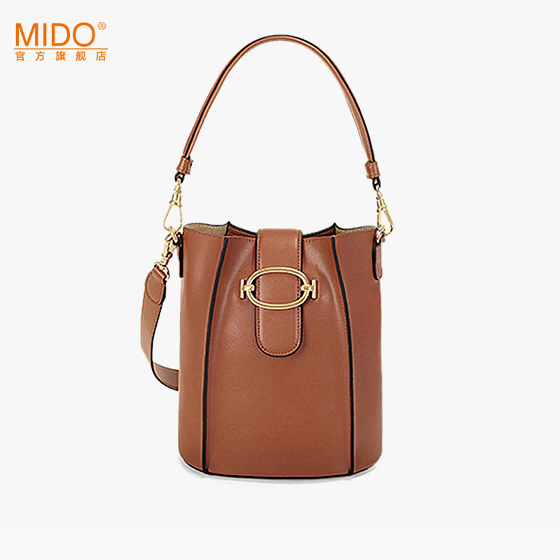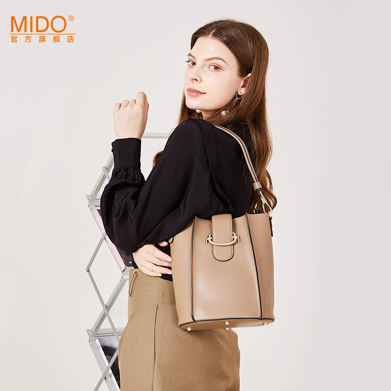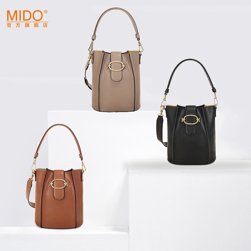 MIDO bag 2023 new trend bull leather slope bag fashion skewed across large capacity bucket bag lady bag