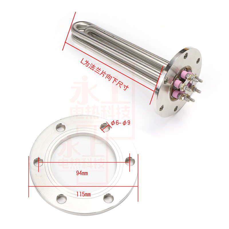 Heat-conducting oil heating pipe boiler engineering water pipe electric heating pipe stainless steel flange high power heating rod Industry 380v