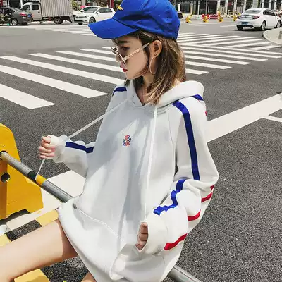 White thick cotton T women hooded plus velvet loose 2021 spring and autumn Korean version of the jacket women's medium and long version of the top ins tide students