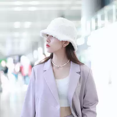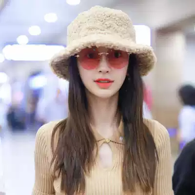 Sei Carina Y Xu Lu Yuan Shanshan star with the same lamb plush fisherman hat female basin hat to keep warm autumn and winter