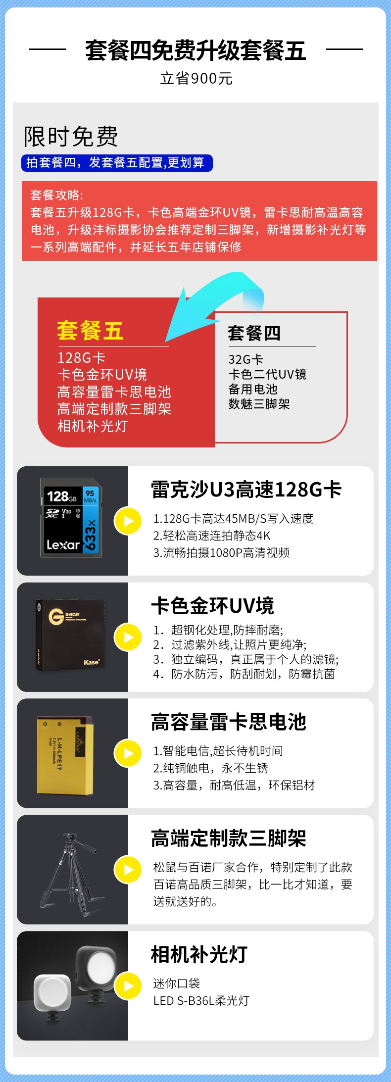 Official Pefit (factory configuration) package one (basic introductory package) package two (starter quality package) package three (photo tourism package) package four (free upgrade package five) package five (high