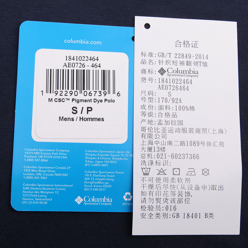 Columbia Columbia outdoor men's cotton breathable lapel POLO shirt short-sleeved T-shirt AE0726