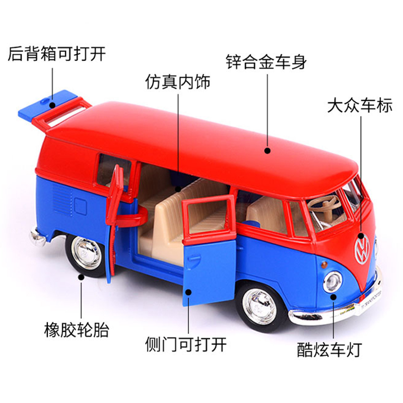 1 36 5 inch metal emulation Fox t1 Classic Bus Alloy Back Force Small Car Model Boys Children Toys