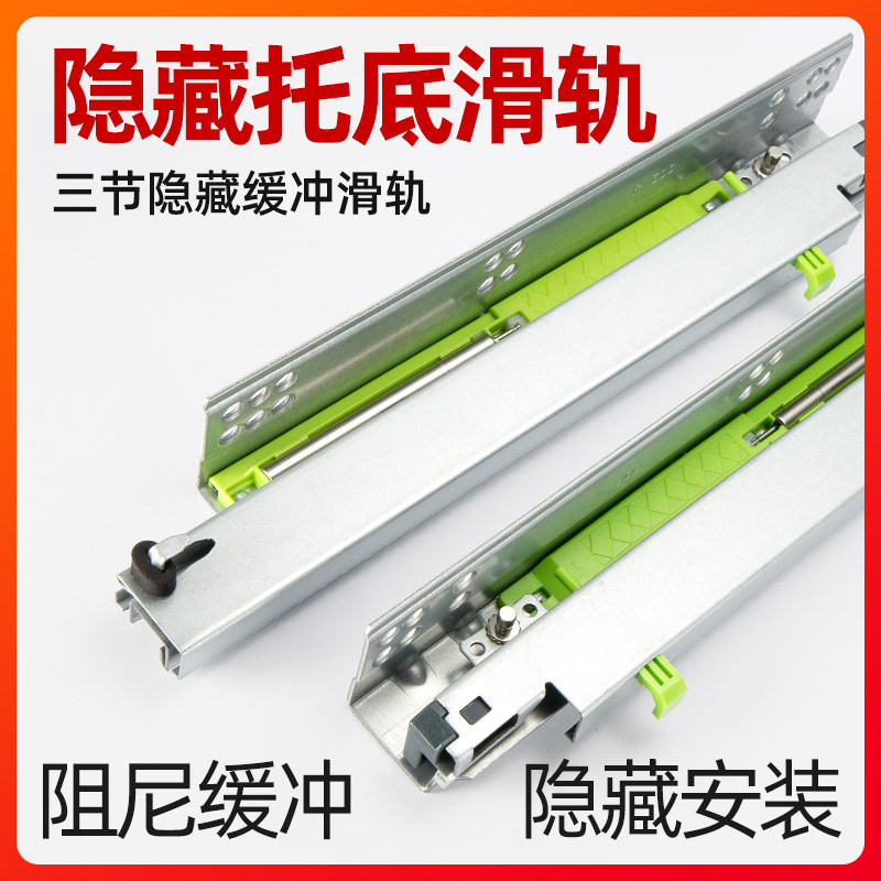 UNSMIL HIDDEN BOTTOM MOUNT PUSH-AND-PULL DRAWER WHOLE CABINET SLIDE RAIL SILENT TRACK CUSHION PRESS REBOUND BALL BEARING RAIL