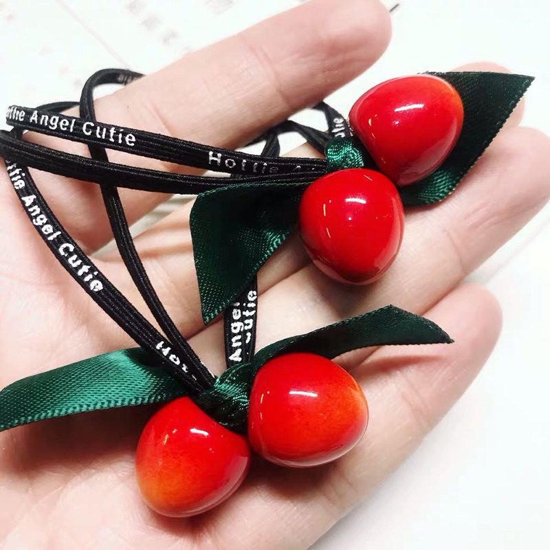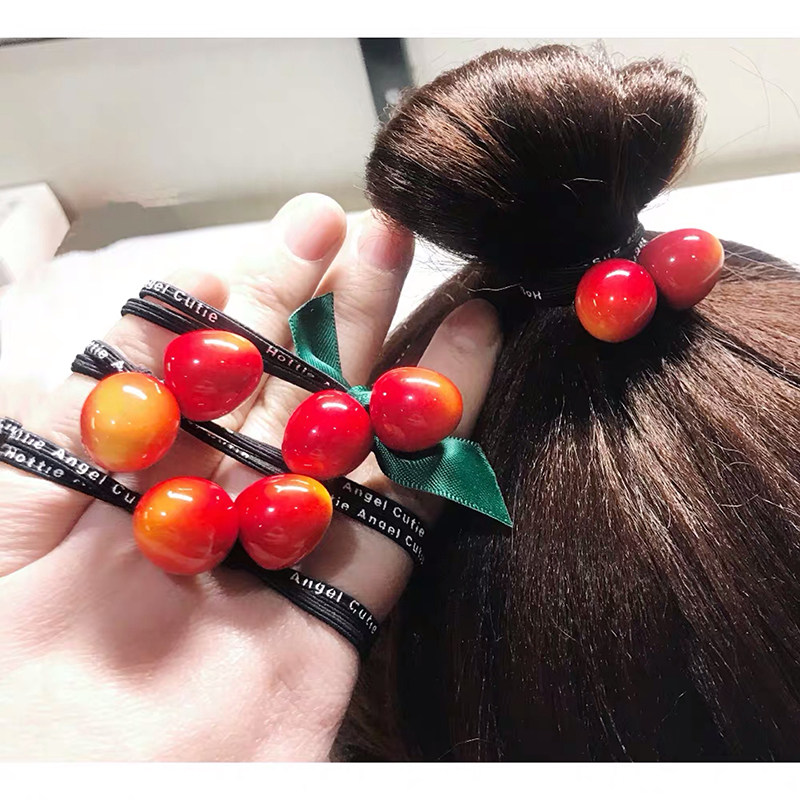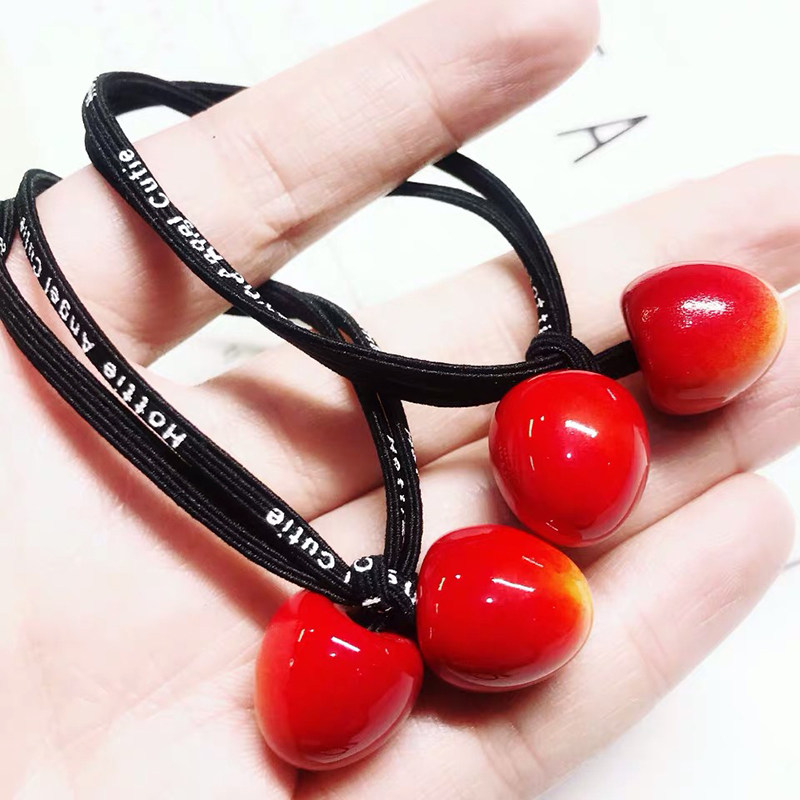 New Cute Cherry Hair Rope Sweet Horse Tail Leather Fascia Durable Double Girl Hair Ring Mesh Red 100 Hitch Rope Hairdressage-Taobao