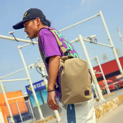 Crossbody sports chest bag men's bag ins large capacity casual canvas bucket shoulder bag multi-function travel tide brand