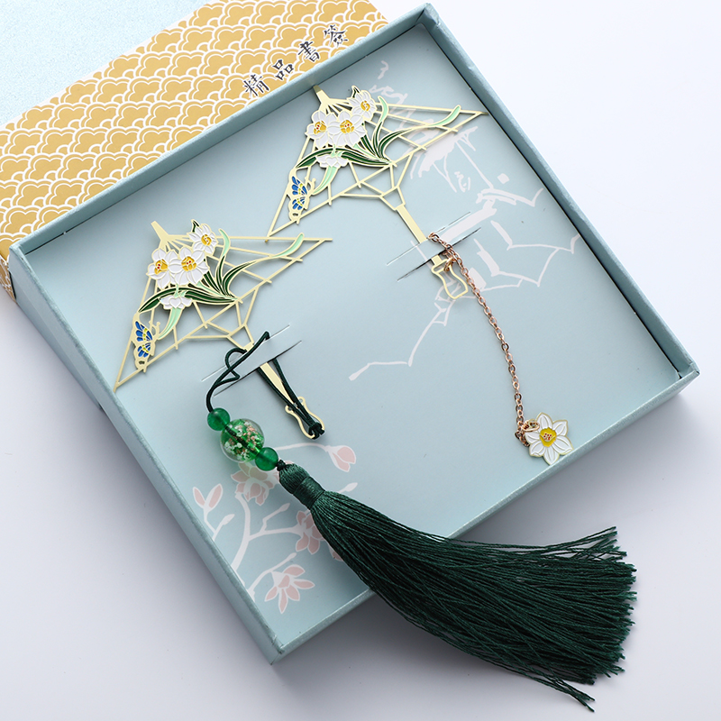 (Narcissus) custom lettering gift classical Chinese style metal bookmarks creative hipster student with gift